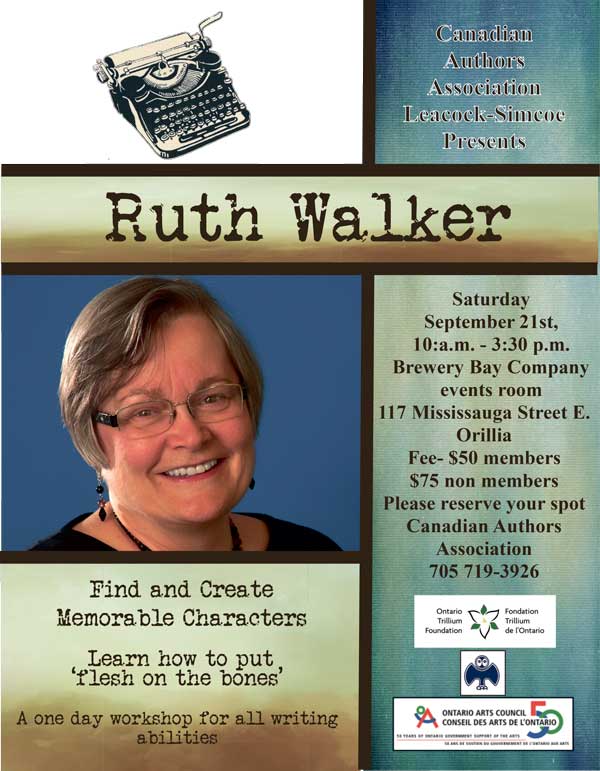 WORKSHOP. September. “Find and Create Memorable Characters” in Orillia, Ontario, offered through the Canadian Authors Association-Leacock Simcoe branch.